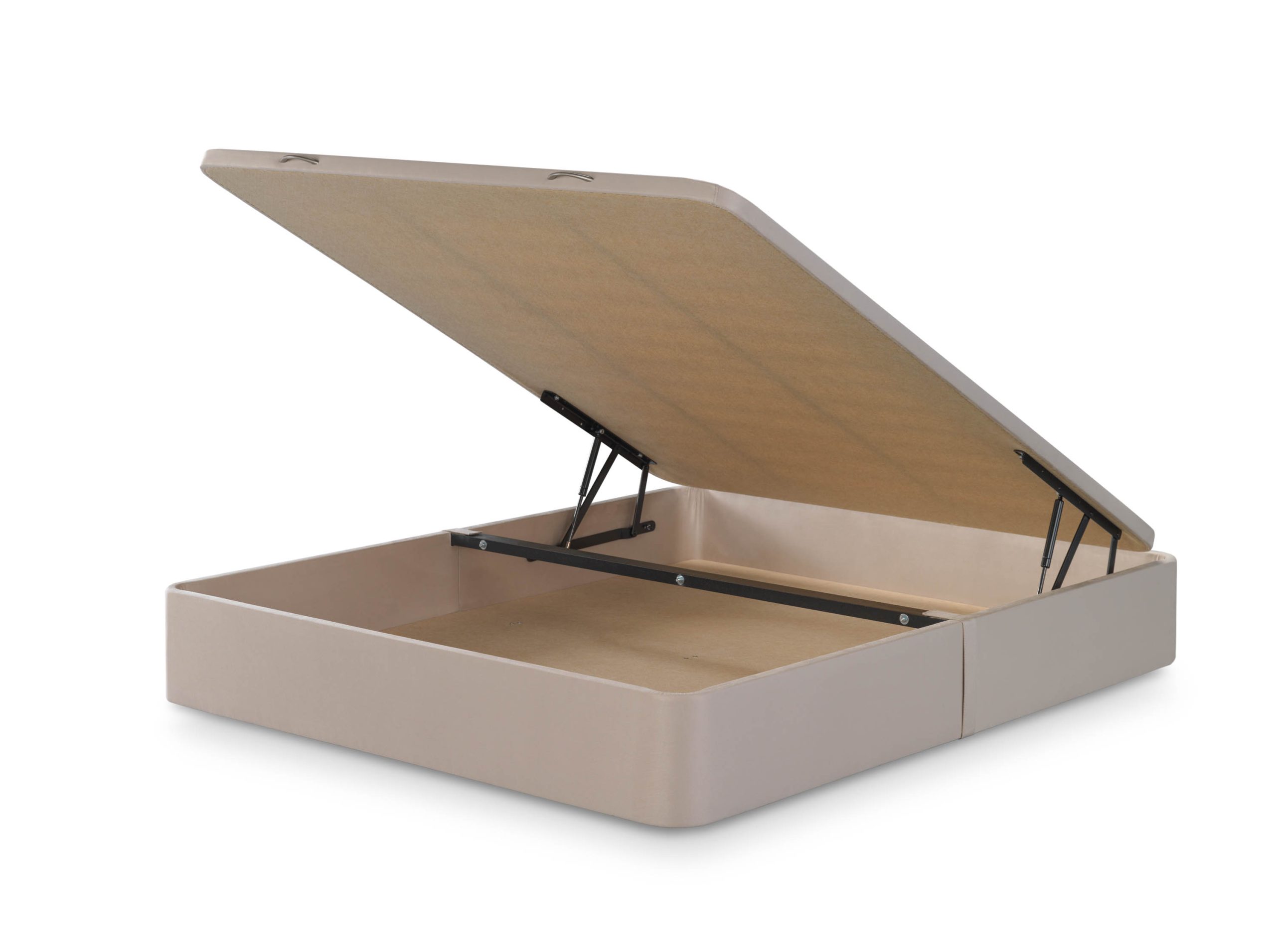 Sommier rebatível com espaço para arrumação. Estrutura leve e fácil de transportar uma vez que se divide em 3 peças (duas partes inferiores e o tampo).